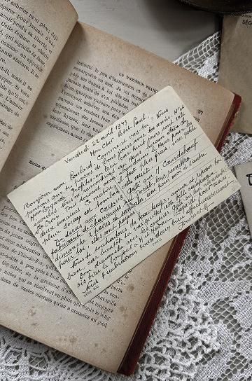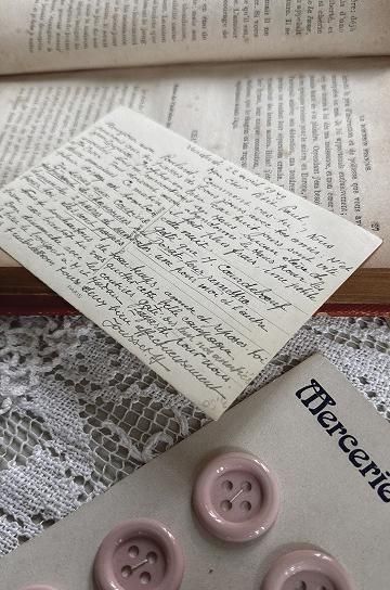 フレンチアンティークのスズランブーケのポストカード。可憐なスズランとそれを囲むように柔らかなライトブルーのグラデーションが描かれた可愛いポストカードです。フランスではスズランは幸福の再来の花言葉を持つ縁起の良い花です。繊細に描かれたスズランは何層にも色が重ねられて立体感が表現されています。茎の部分と文字にはゴールドで装飾されています。表面には「MuguetPorte Bonheur (スズラン 幸運のお守り)」の文字が書かれています。裏面には当時書かれたメッセージが鮮明に残されていて、こちらのカードは1949年に書かれた手紙なことがわかります。大切な人へカードを送り合う習慣が盛んだった時代に作られ、今まで大切に保管されていたであろう貴重なアンティークカード。キャビネットの中やディスプレー空間を華やかに彩ってくれる、フレンチアンティークのスズランブーケのポストカードです。 | ![]() | ||||||||||||||