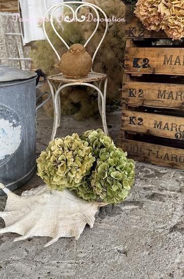 ![]() アンティークと相性ぴったりの、美しい紫陽花のドライフラワーは1輪で花瓶に挿したり、ブーケにしてボリューム感を楽しんでも。 | ![]() あじさいの花は日本でももちろん人気ですが、フランスでは元気な女性という花言葉で人気の、ガーデナー達のお気に入りの花の一つで、良く見かけます。 | ||||||||||||||