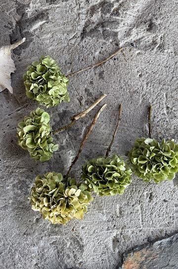 ![]() アンティーク家具やブロカント小物等、アンティークのあるディスプレーにマッチする、マットで枯れた風合いが魅力的な、あじさいのドライフラワー。朝のうちに摘んで、丁寧にドライにした紫陽花達です。 | ![]() 花の風合いが時間の経過と共にゆっくりと淡い色合いとなってゆくのを楽しんで。 | ||||||||||||||