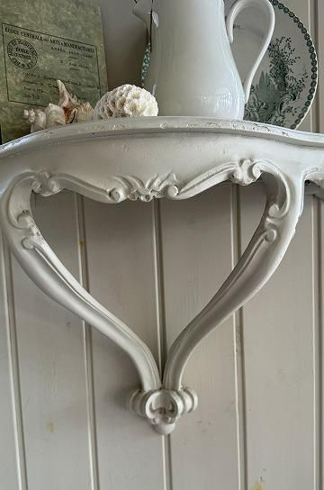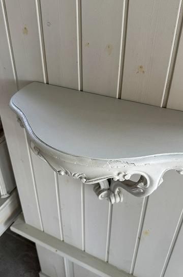 ![]() 美しいシルエットにハンドカーヴィング彫刻、フレンチホワイトの塗装が雰囲気あるウォールコンソールです。曲線的で優雅なシルエット。 | ![]() 曲線の美しい天板とロココ調カーヴィングの前板から脚に続くシルエットが繊細な印象。 | ||||||||||||||