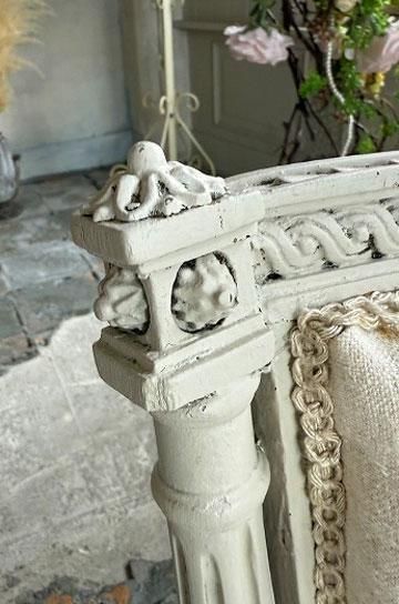 ![]() 家具職人と彫刻職人によって丁寧に作られた細いシルエットの背もたれがカーブしたデザインが美しい。 | ![]() コーナーにはロゼッタ彫刻が施された凹凸の深い職人気質を感じる調和のとれた美しいデザインです。 | ||||||||||||||