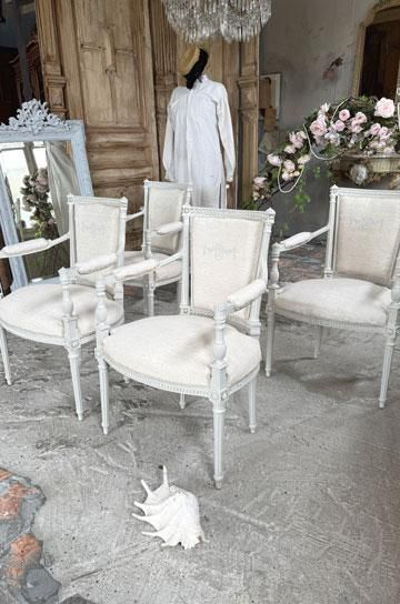 ![]() シャトーの客間の装飾家具等として製作されたたルイ16世アームチェア。 |