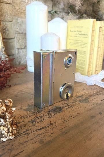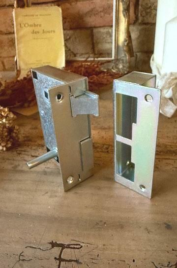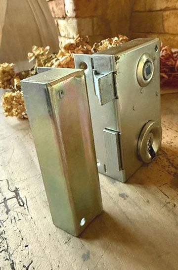 フランス製鍵付きの右吊り左引き扉用リムロック