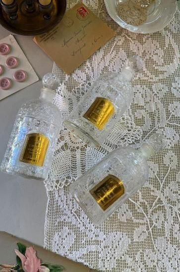 ![]() フレンチアンティークのガラスボトル。ゲラン社製のオーデコロン、ランスタン ド ゲランが入っていた、アンティークのビーボトルです。 | ![]() 1894年発表の、ピエールの息子で2代目調香師エメ・ゲランが調合した、シトラスやフローラル、ウッドが溶けあう香水です。 | ||||||||||||||