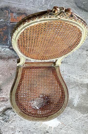 コンディションアンティーク品の為、傷やすれ、塗装の薄れ、ケイン網の損傷,跡等あり年月の経過した雰囲気です。