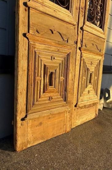 | 重厚で存在感あふれるフレンチアンティークのアイアンペアドア。教会に関係する建築や重要な公共施設、あるいは格式ある邸宅で使われていたと考えられる、歴史と風格を感じさせる一対のドアです。 | ![]() | ||||||||||||||