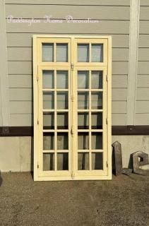シャビーな木枠付きのグレモン錠フレンチアンティークウィンドウ