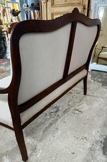 ![]() ウォルナッツ材で貝と花模様が施されたアンティークバンケットチェアー。 | ![]() 中央からアームへと続くが美しい流線形のルイ15世様式の2シーターソファです。 | ||||||||||||||